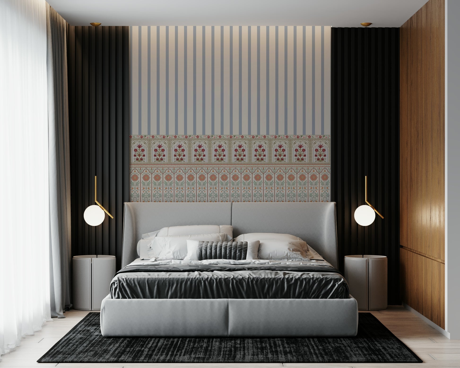 Regal Bloom Stripes Wall Mural