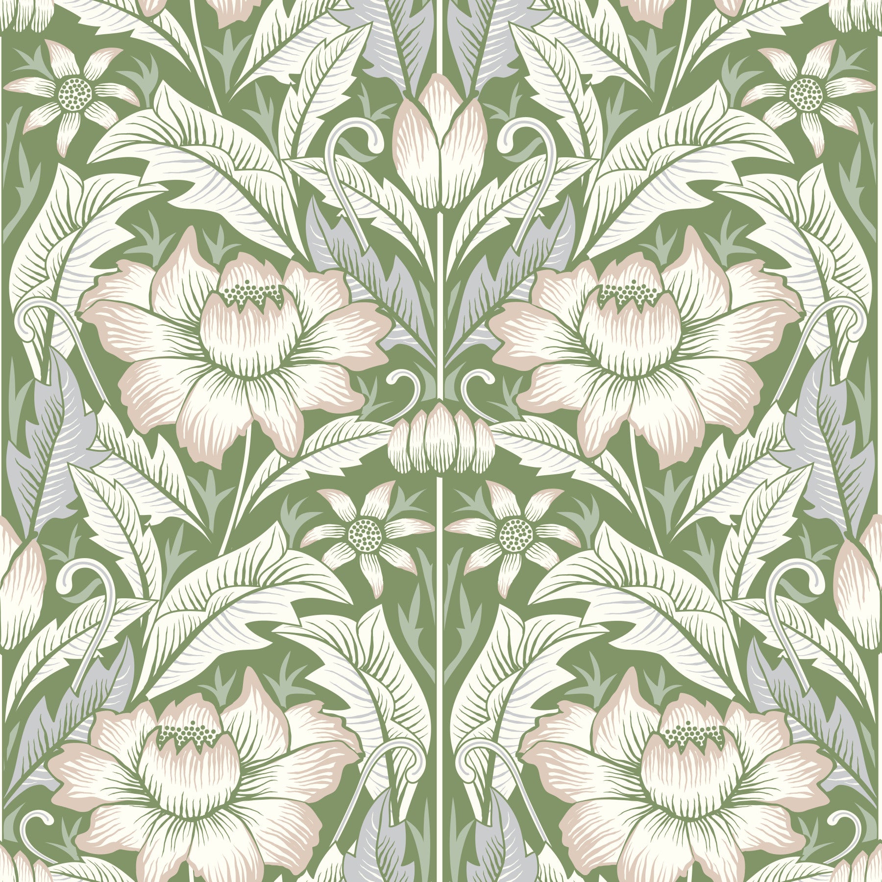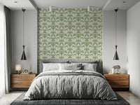 Soft green hues and delicate ivory florals create a calming, natural look. This design brings a fresh, botanical elegance ideal for serene, nature-inspired interiors.