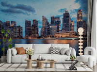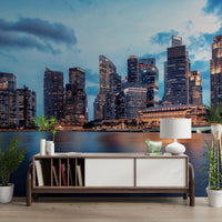 Înalță-ți interiorul cu frumusețea senină a acestui tapet cu peisaj urban pentru pereți. Imaginea prezintă un oraș modern care se reflectă în ape liniștite sub un cer dramatic, înnorat. O paletă de albastru intens și auriu cald creează o atmosferă de rafinament calm. Designul este o alegere perfectă pentru a adăuga profunzime și interes vizual unei camere de zi, sufragerie sau birou. Acest tapet completează atât decorul contemporan, cât și pe cel tradițional, oferind un fundal uimitor care sporește relaxarea și contemplarea.