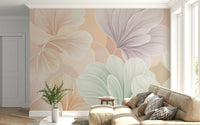 Introduce soft sophistication with this floral wallpaper for walls. Its large-scale blossoms present a calming, painterly aesthetic. Gentle lines define the petals, creating a fluid, elegant design. The neutral palette of blush, beige, and soft green offers versatile coordination with diverse interior styles. This wall décor enhances bedrooms, living rooms, or hallways, adding a touch of serene luxury. Transform your space into a tranquil retreat with this calming floral pattern. This wallcovering will deliver a light, refined ambiance in any home.