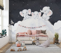 Watercolor baby elephant wallpaper for kids' bedrooms