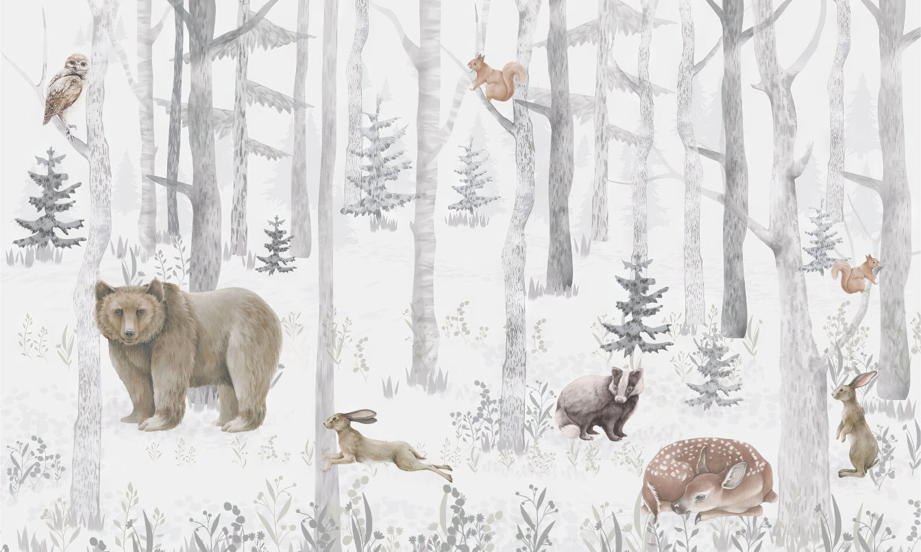 Introducera en bit av skogen i din barnkammare med tapeten "Entrolled Forest Fauna". Denna noggrant utformade design har en rofylld samling skogsdjur som fångar den förtrollande essensen av skogslivet. Tapeten blandar subtila färger med detaljerade illustrationer av varelser som tysta ugglor och lekfulla ekorrar, vilket gör den till en perfekt visuell njutning för små ögon. Den fungerar inte bara som ett dekorativt föremål utan stimulerar också fantasin och främjar en kärlek till naturen hos barn. Skaffa dig denna vackra tapet idag och förvandla barnrummet till en lugnande skogsplats som ditt barn kommer att älska.