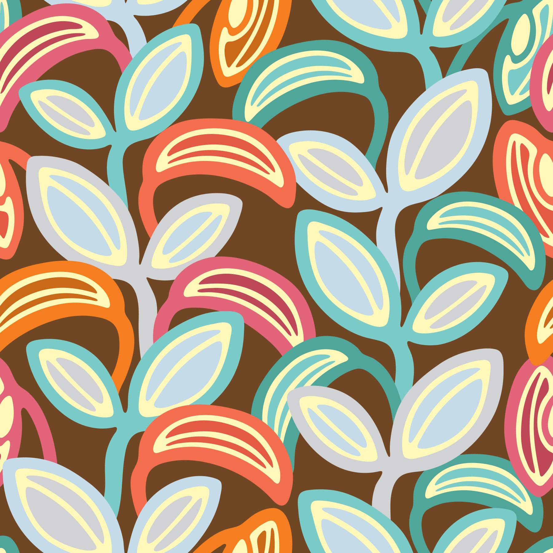 Groovy retro mid-century leaves pattern.