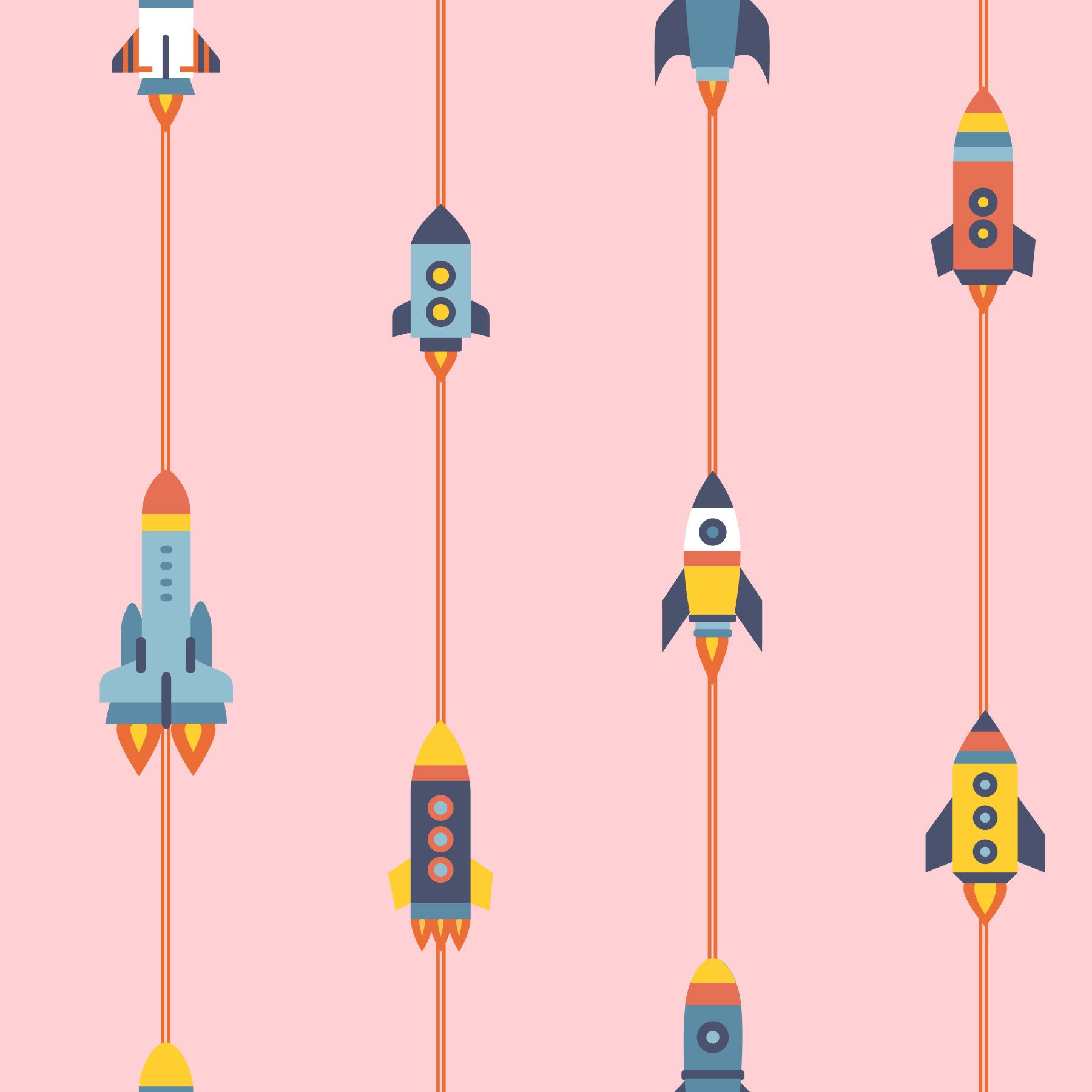 Mid-Century Modern Spaceships Rocket Space on Pink Wallpaper⁠
