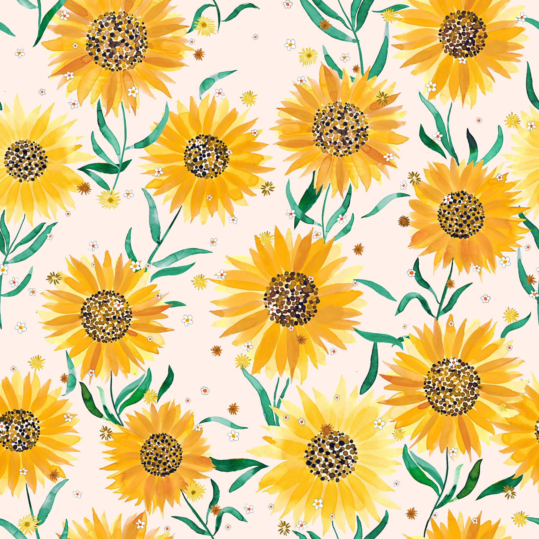 Wallpaper with delicate sunflowers in a warm, breezy layout.